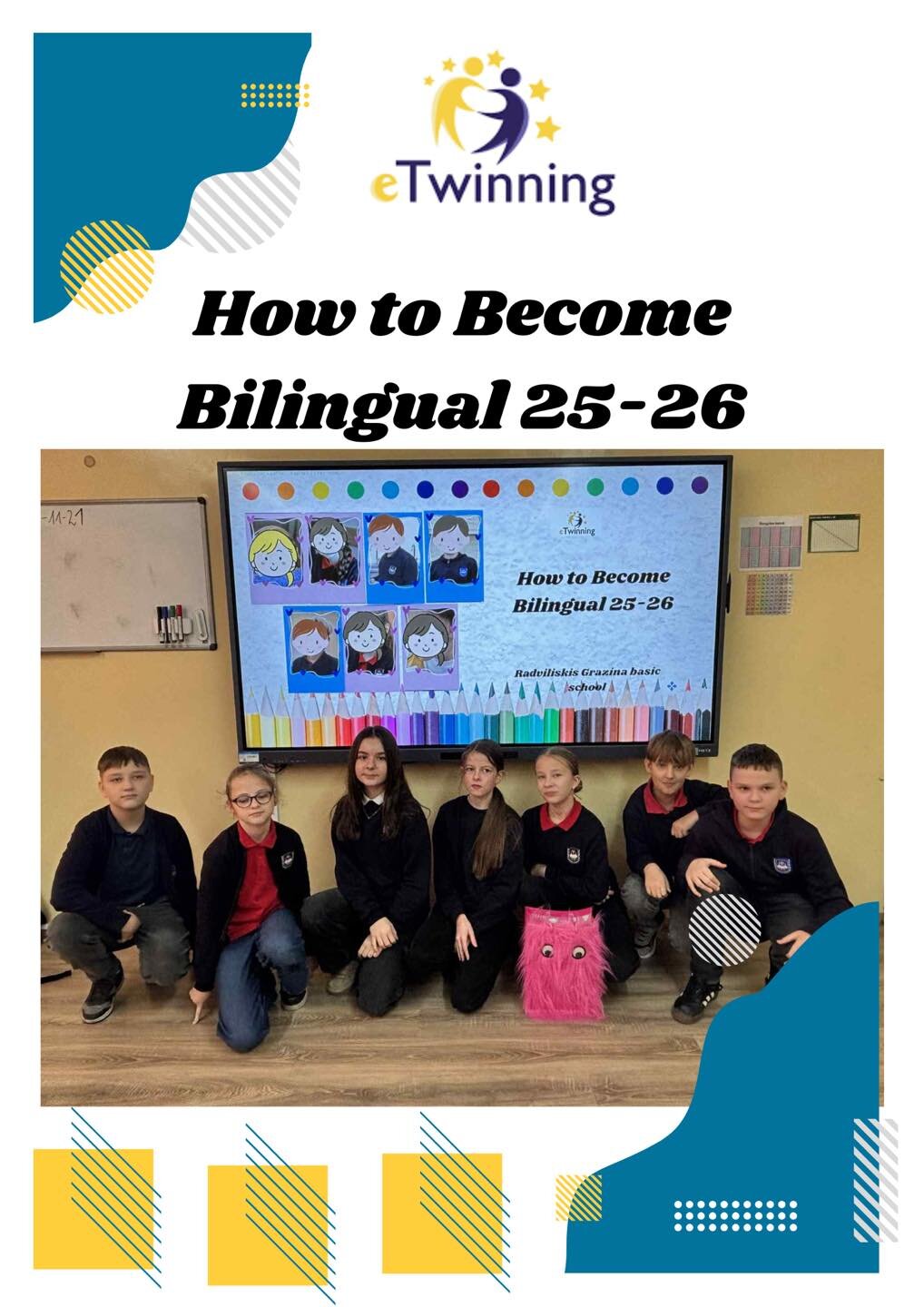 Radviliškio Gražinos pagrindinės mokyklos 5b klasės mokiniai šiais mokslo metais dalyvauja tarptautiniame eTwinning projekte „How to Become Bilingual 25–26“, kuris skatina mokinius tobulinti kalbinius gebėjimus, pažinti skirtingas kultūras ir bendradarbiauti su bendraamžiais iš visos Europos.