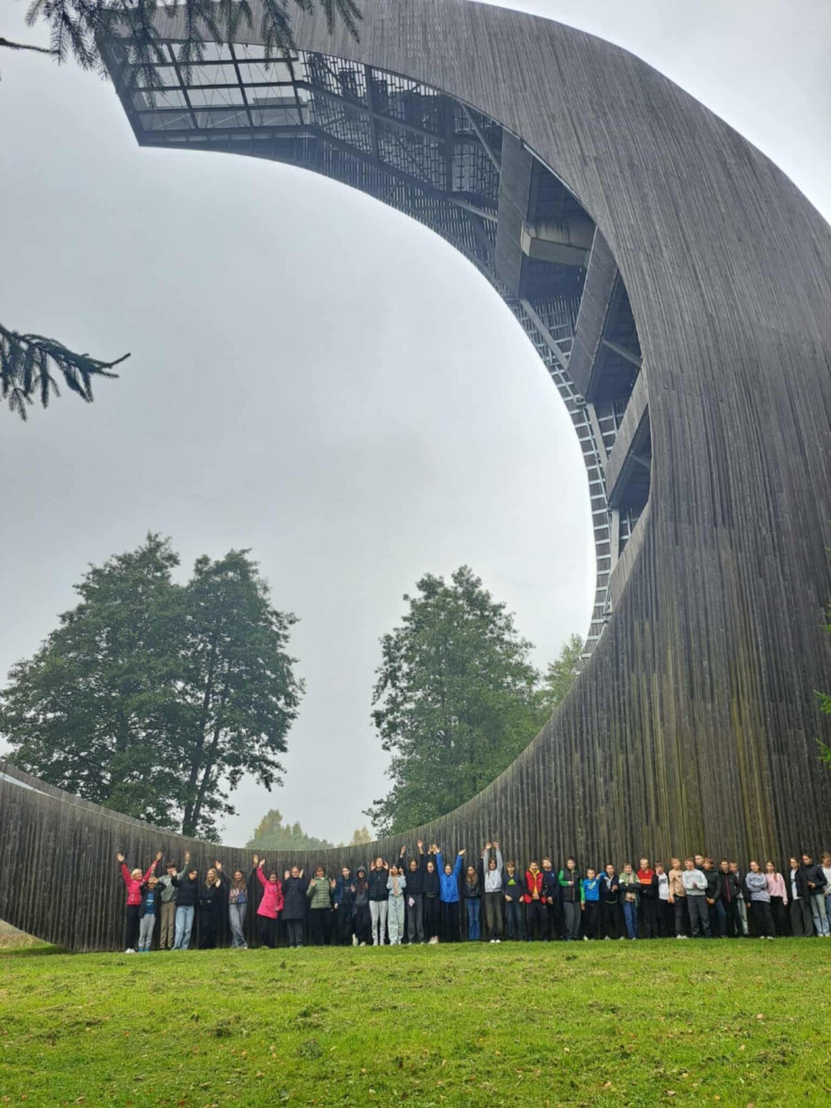 Biržų regioninio parko teritorijoje prie Kirkilų karstinių ežerėlių pastatytas apžvalgos bokštas, kurio forma primena kanoją arba grimztančią valtį. Mokiniai, su jaunystės polėkiu, įveikė beveik 32 m aukščio statinį.