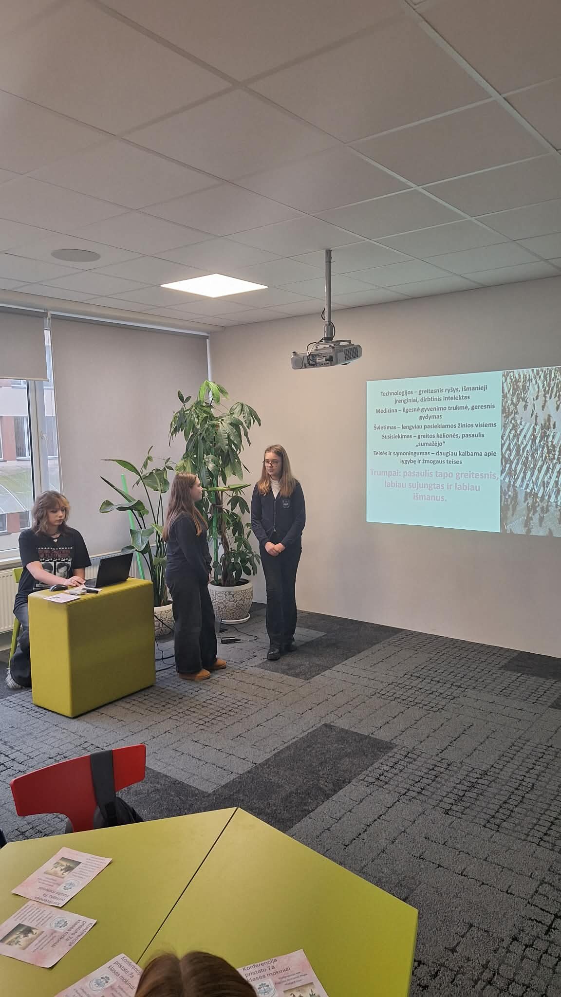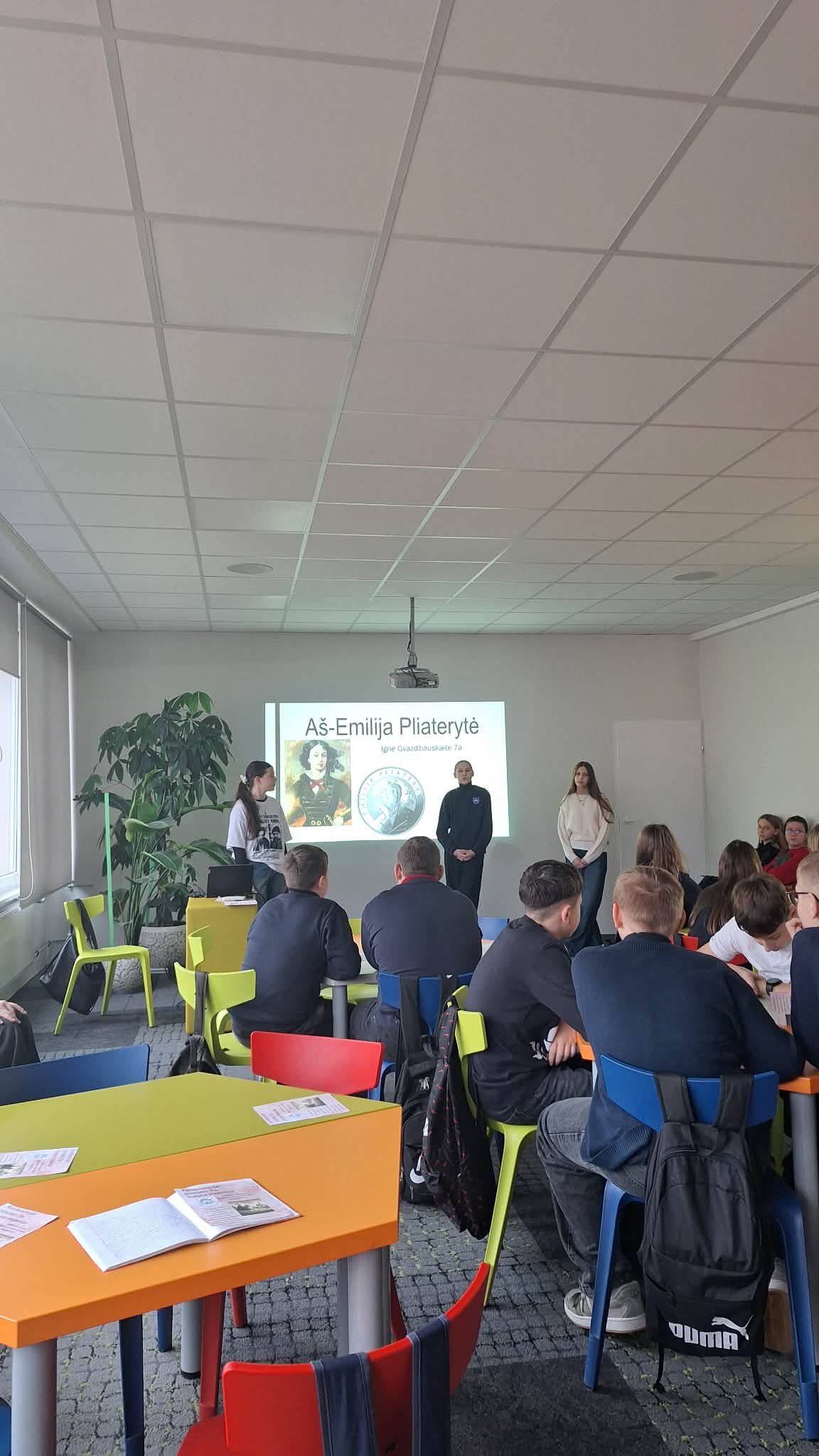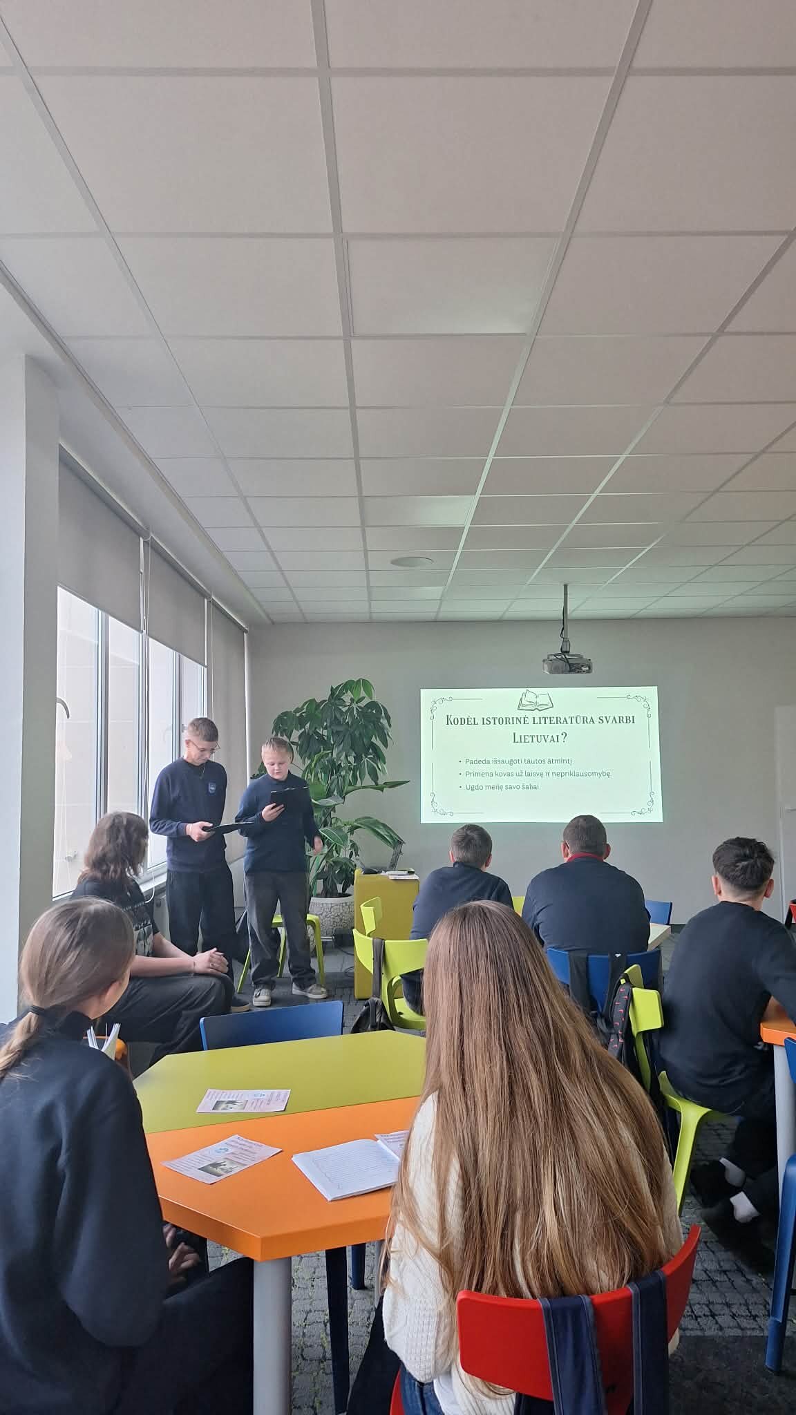 7a klasėje vyko mokinių konferencija „Ką praeities žmogui atskleidžia praeitis?“, kurią organizavo lietuvių kalbos ir literatūros mokytoja metodininkė Joana Laurutienė.