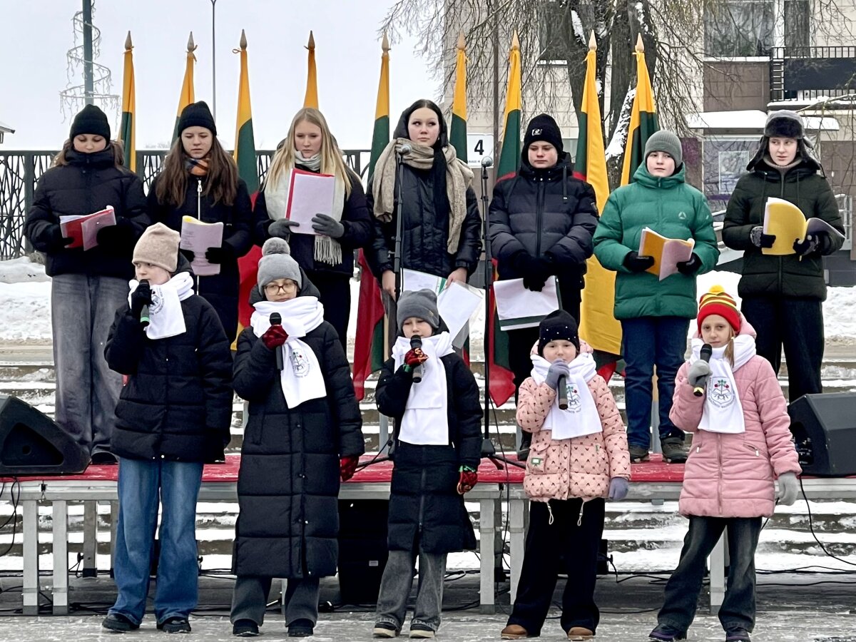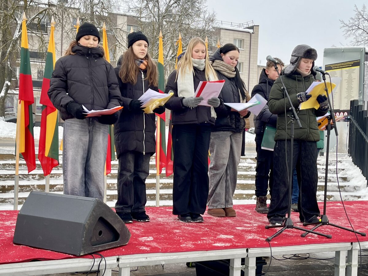 Po mokykolos renginių apie 80 mokinių dalyvavo miesto iškilmingame minėjime, skirtame Laisvės gynėjų dienos 35-mečiui paminėti. Vėl skambėjo eilės, kurias deklamavo 6a,8a klasių mokiniai, o 10 a klasės merginos atliko choreografinę kompoziciją su deglais. Trečiokės mergaitės padainavo dainelę apie Lietuvą. Mokiniams pasirengti padėjo lietuvių k. mokytoja A.Mackevičienė, mokytojai D.Šeškus ir A.Miškinis.