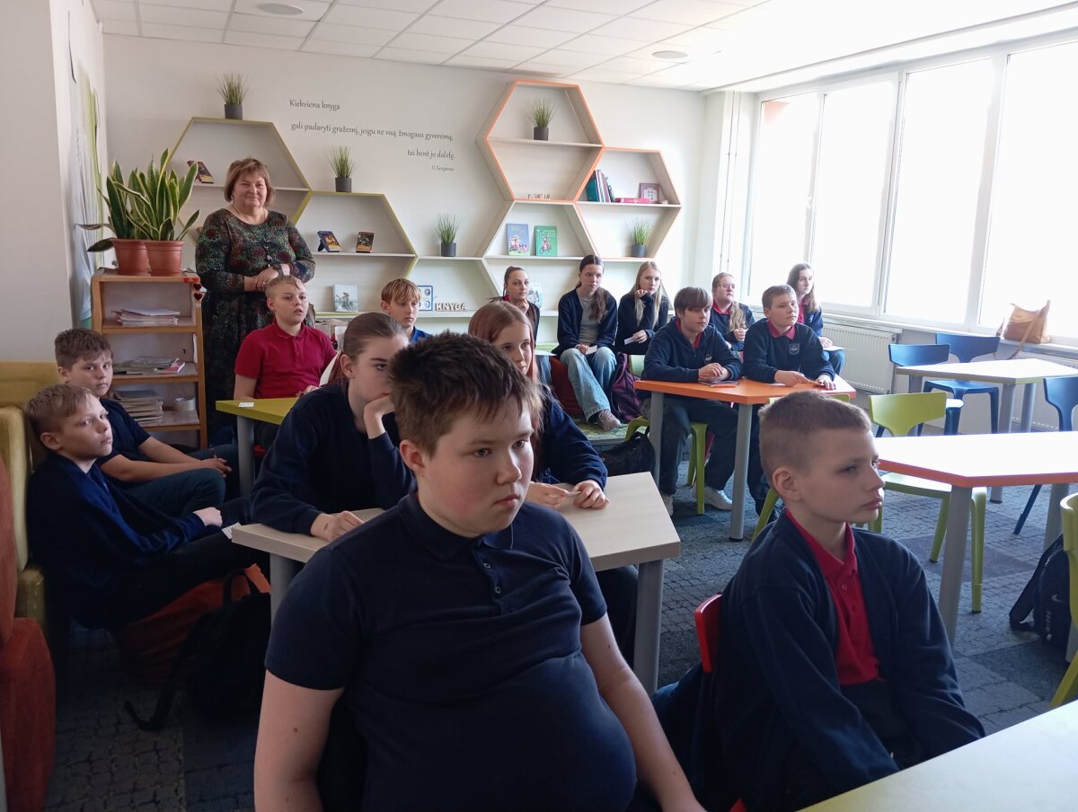 Kovo 12 dieną 7b klasės mokiniai lankėsi miesto bibliotekos vaikų skyriuje. -