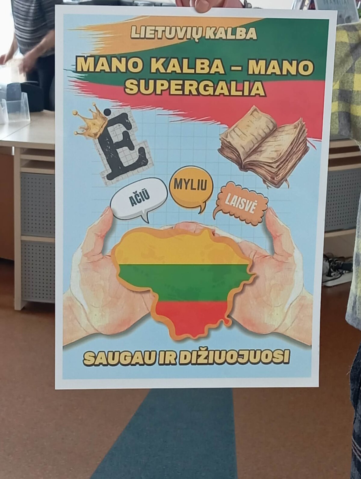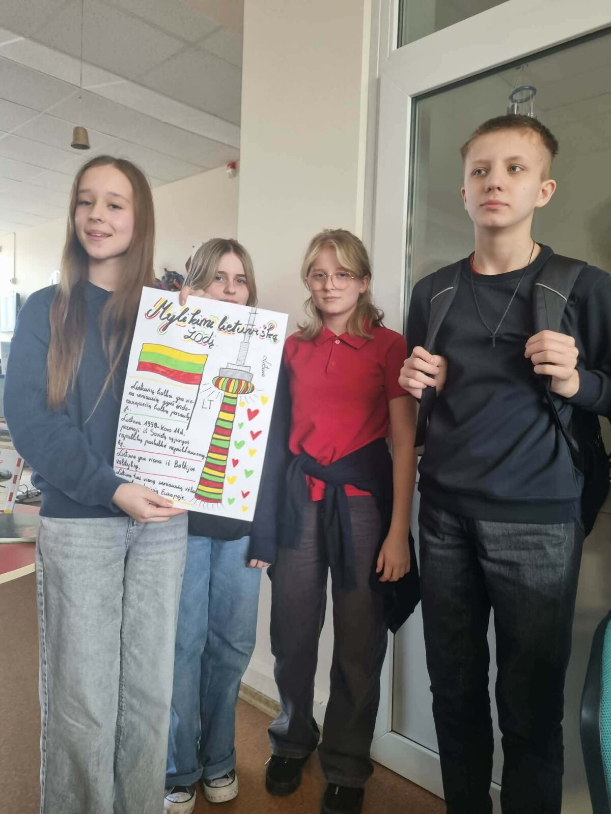 Džiugu, kad mokinių plakatuose atsispindi Lietuvos unikalumas. Plakatai spalvingi, su tautiniais simboliais. Ši pamoka tarsi apibendrino šventinę Kovo 11-ąją.