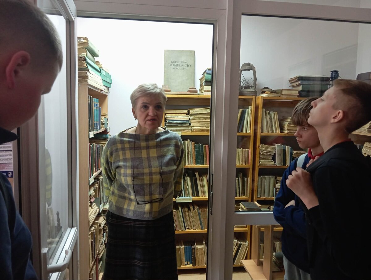 Pamokos pradžioje bibliotekos vedėja Nijolė Pakštienė pravedė trumpą ekskursiją: papasakojo apie spaudos draudimo laikotarpį, parodė 19 a. pabaigos, 20 a. pradžios leidinius. Paskui mokiniai ėjo į vaikų skyriaus patalpas, kur dirbo grupėse. Lietuvių kalbos mokytoja A.Mackevičienė pristatė plakato gaminimo reikalavimus, paaiškino, kur ir kokios informacijos ieškoti. Labai pravertė bibliotekininkių parengta parodėlė apie Lietuvą, jų parengtas plakato pavyzdys. Mokiniai keturiose grupėse, pasiskirstę pareigomis, atliko užduotis, paskui jas pristatė klasės draugams. Mokinių darbais pasidžiaugė ir septintokus atlydėjusi mokyklos bibliotekos vedėja E. Ryšytė.